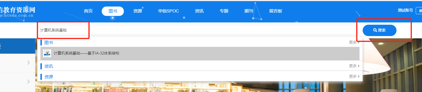 直接在页面上的搜索栏中输入您想搜索的电子游戏官网总平台 关键字即可。(例如:选择书名,输入:“计算机系统基础”即可) 如图所示,用其他已知信息搜索时,以此类推。
