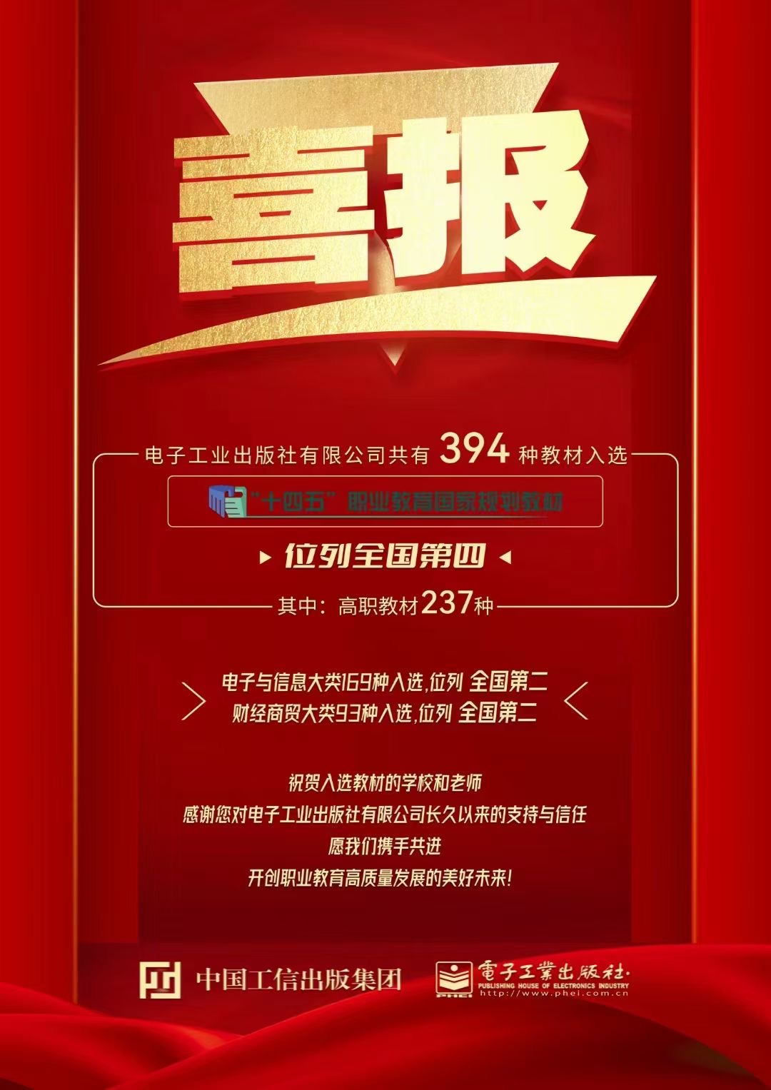 喜报:电子社394种教材入选“十四五”职业教育国家规划教材