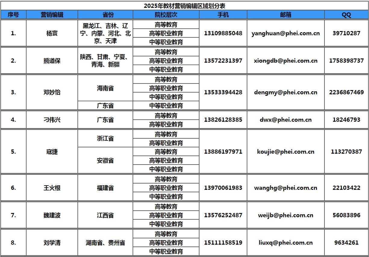 副社长:蔡 葵 010-88254595 sunnycai@phei.com.cn